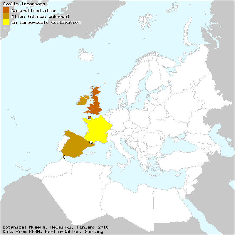 Source: Henning, T. & Raab-Straube, E. von (2016): Oxalidaceae. – In: Euro+Med Plantbase - the information resource for Euro-Mediterranean plant diversity.