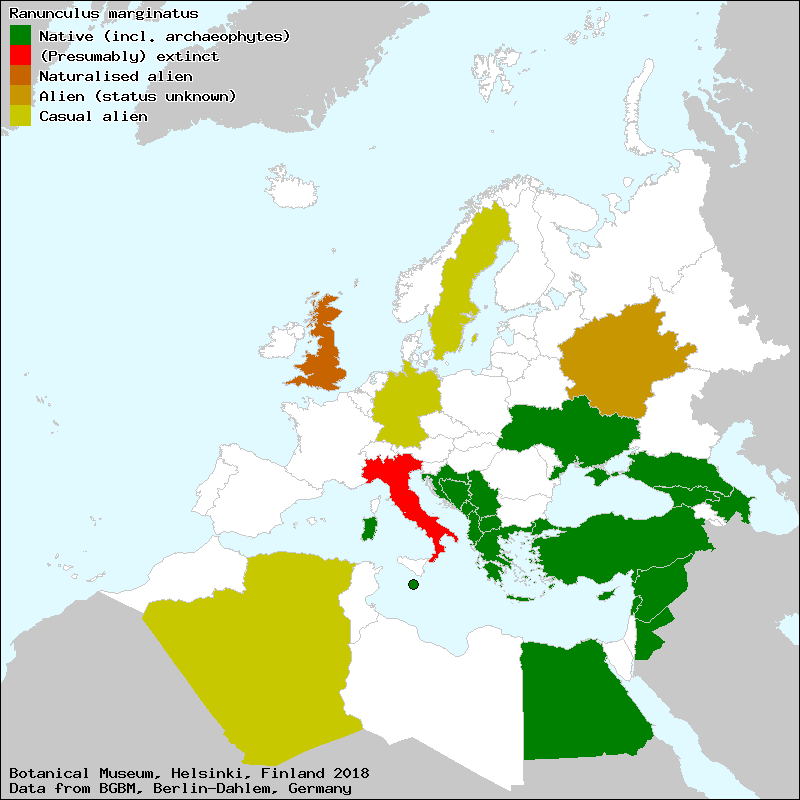 Hörandl, E. & Raab-Straube, E. von (2015): Ranunculeae. – In: Euro+Med Plantbase - the information resource for Euro-Mediterranean plant diversity. This work is licensed under a Creative Commons Attribution-ShareAlike 3.0 Unported license (CC-By-SA-3.0 Unported).