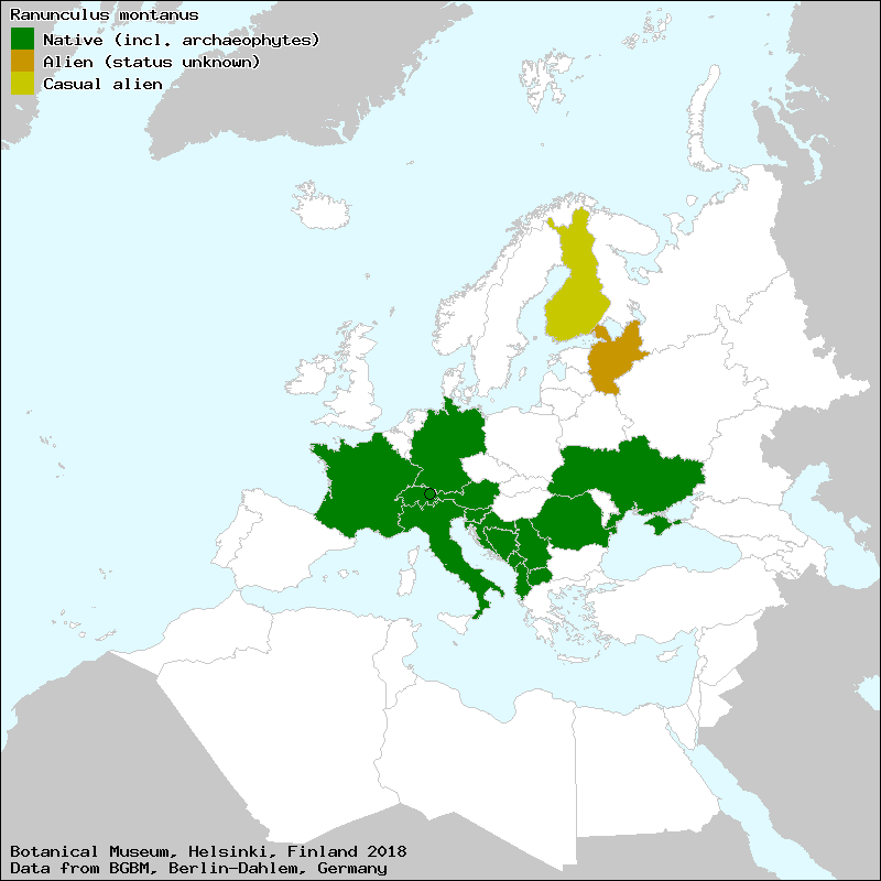 Hörandl, E. & Raab-Straube, E. von (2015): Ranunculeae. – In: Euro+Med Plantbase - the information resource for Euro-Mediterranean plant diversity. This work is licensed under a Creative Commons Attribution-ShareAlike 3.0 Unported license (CC-By-SA-3.0 Unported).
