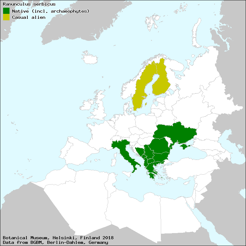 Hörandl, E. & Raab-Straube, E. von (2015): Ranunculeae. – In: Euro+Med Plantbase - the information resource for Euro-Mediterranean plant diversity. This work is licensed under a Creative Commons Attribution-ShareAlike 3.0 Unported license (CC-By-SA-3.0 Unported).