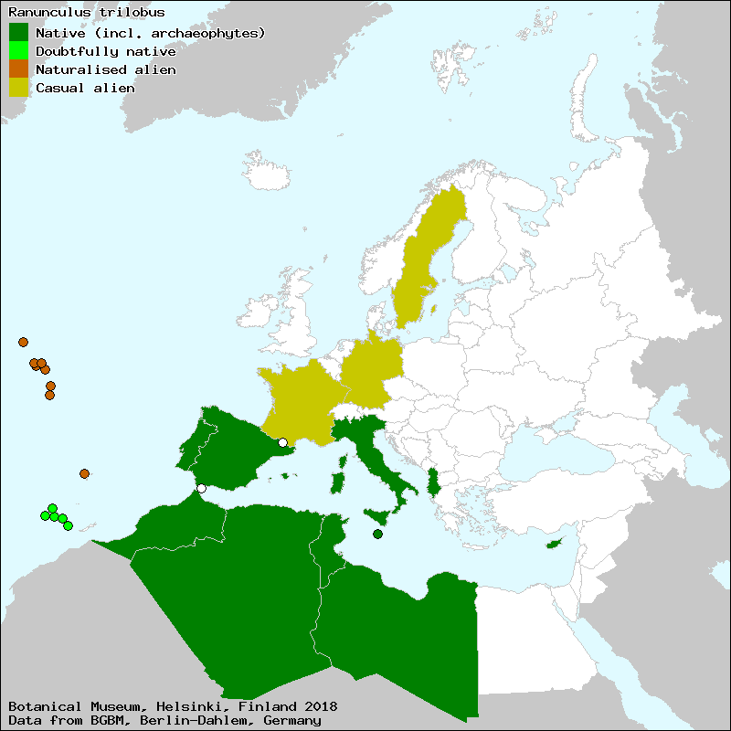Hörandl, E. & Raab-Straube, E. von (2015): Ranunculeae. – In: Euro+Med Plantbase - the information resource for Euro-Mediterranean plant diversity. This work is licensed under a Creative Commons Attribution-ShareAlike 3.0 Unported license (CC-By-SA-3.0 Unported).