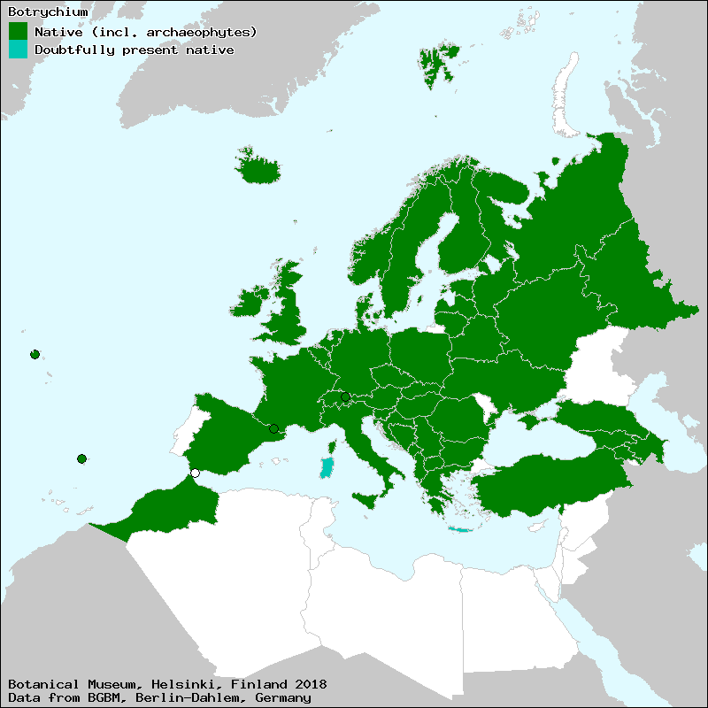 Botrichio (Italian), Botryche (French), Fieri si hënë (Albanian), Holdruta (Hungarian), ķekarpaparde (Latvian), Limba cucului (Roumanian), Maanvaren (Dutch), mjesečinac (Croat), mladomesečina (Slovene), Mondraute (German), Mondrautenfarn (German), Podejźrzon (Polish), Rautenfarn (German), Traubenfarn (German), varpenis (Lithuanian), Võtmehein (Estonian), vratička (Czech), vratička (Slovak), vratičkovec (Slovak), гроздовник (Russian), гронянка (Ukraine), Лунна папрат (Bulgarian), салхымоту (Azerbaijan), ԲՈՏՐԻԽԻՈՒՄ (Armenian)[Credits] |